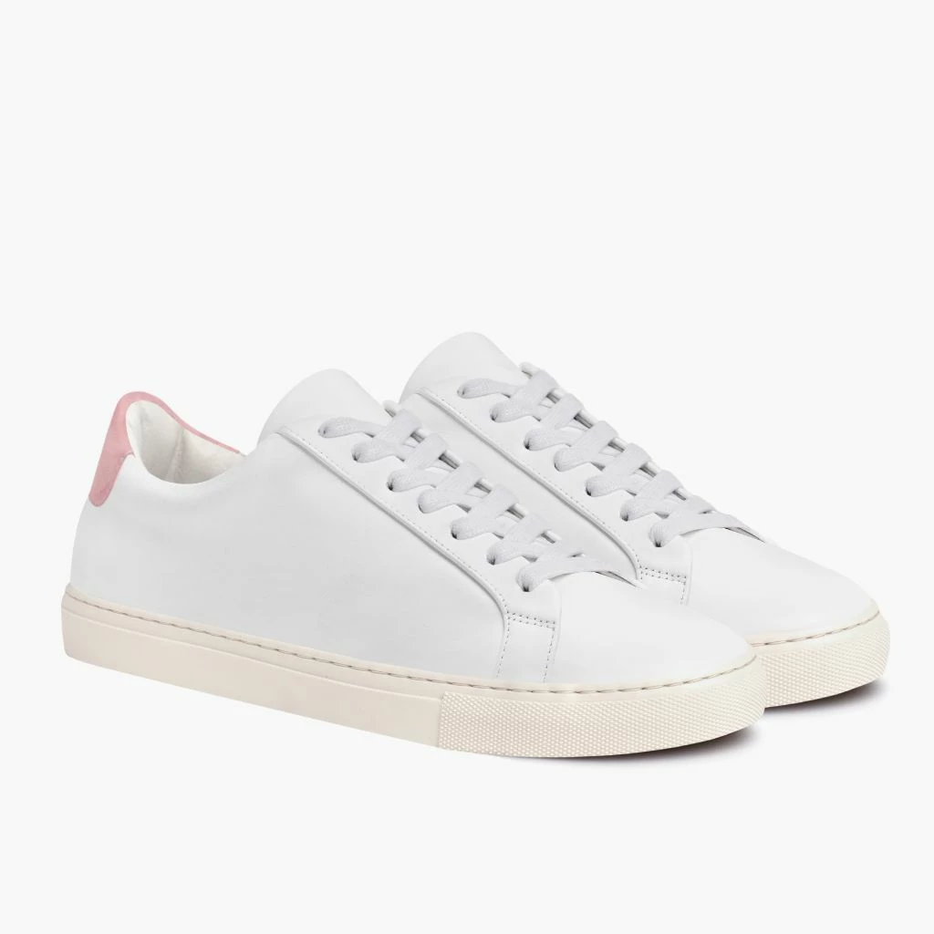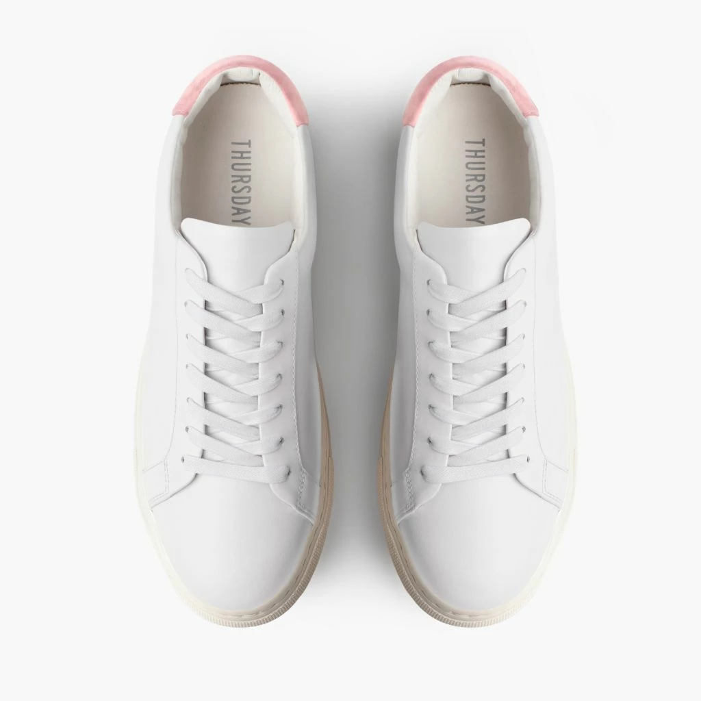 - White Nappa Leather With Blush Nubuck Heel Accent