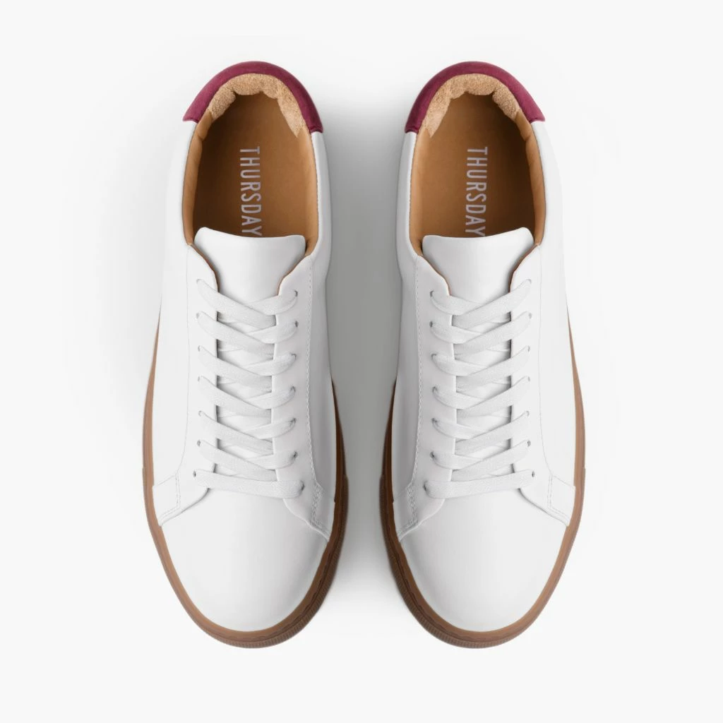 - White Nappa Leather With Burgundy Heel Accent